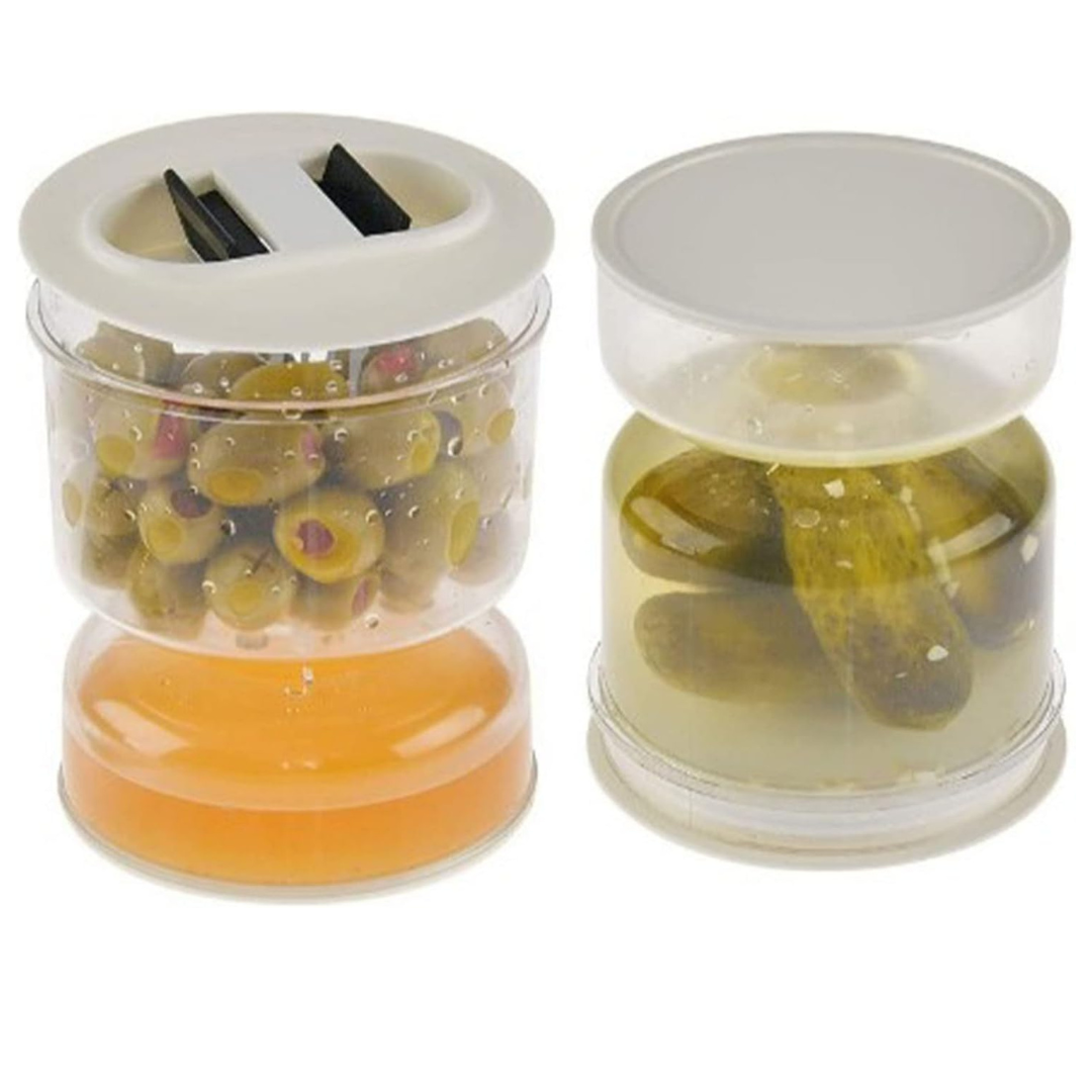 Say goodbye to messy spills with this Brine Separation Storage Jar, perfect for storing pickles, olives, cherries, and other brined or marinated foods. Its smart design separates the liquid from the solid for easy serving.