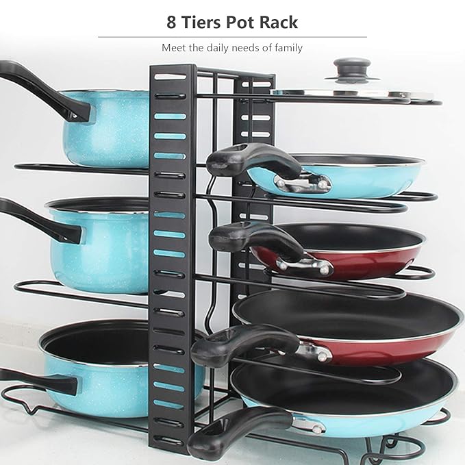 π³ 8 Adjustable Tiers β Customize the height to fit different pots, pans, and lids.
