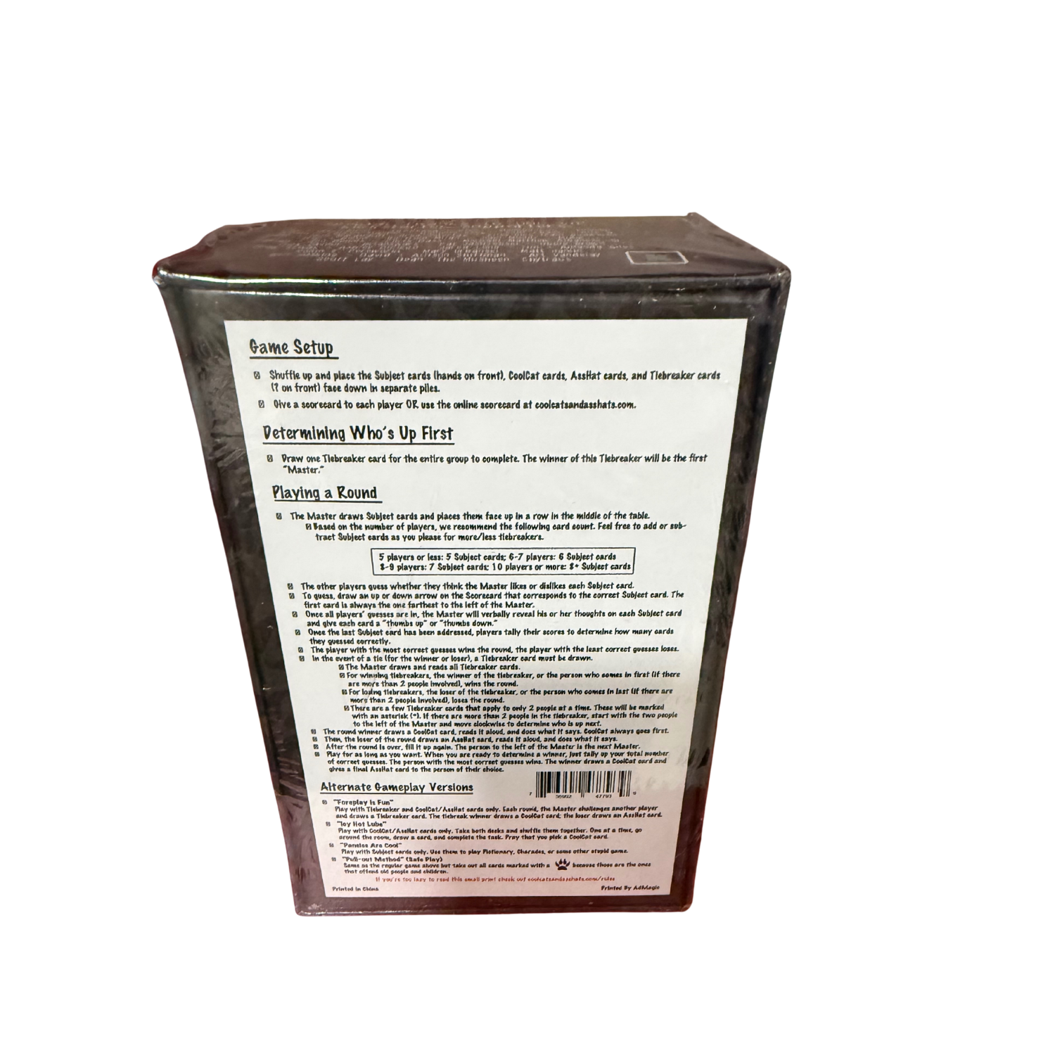 The other players must guess which Subject card the Master likes (CoolCat) or dislikes (AssHat).
