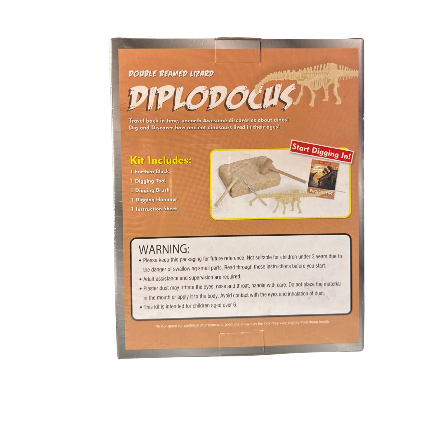 Become a young paleontologist with the Diplodocus Dig & Discover Kit! Unearth the secrets of the prehistoric world as you dig, uncover, and assemble the skeleton of the mighty Diplodocus. A fun and educational hands-on activity for kids who love dinosaurs and discovery!