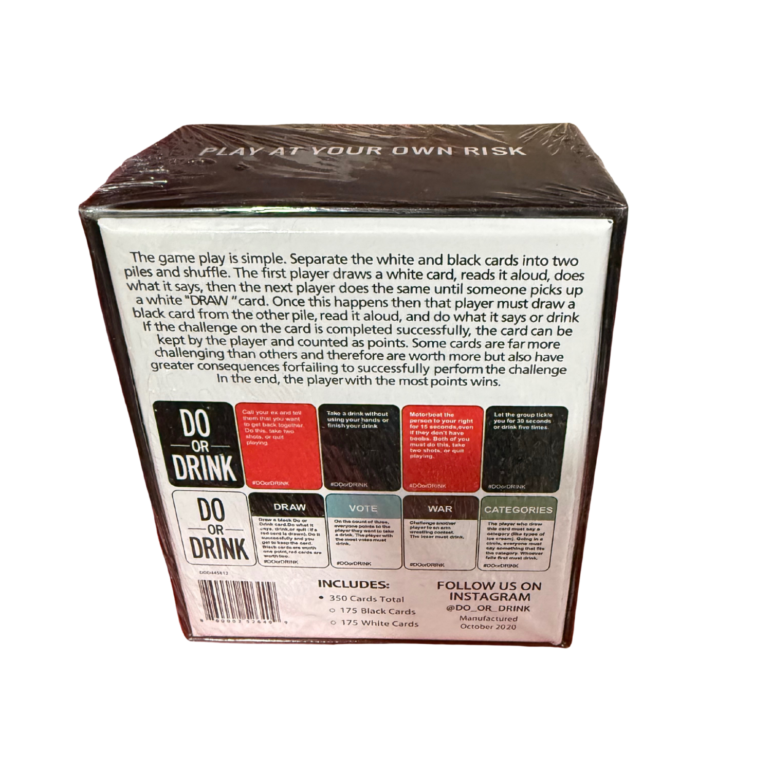 Do or Drink is an intense and hilarious adult party card game where players must either do the challenge written on the card — no matter how wild — or take a drink. It’s a high-stakes, high-energy game perfect for parties and social gatherings where laughter and chaos are guaranteed.