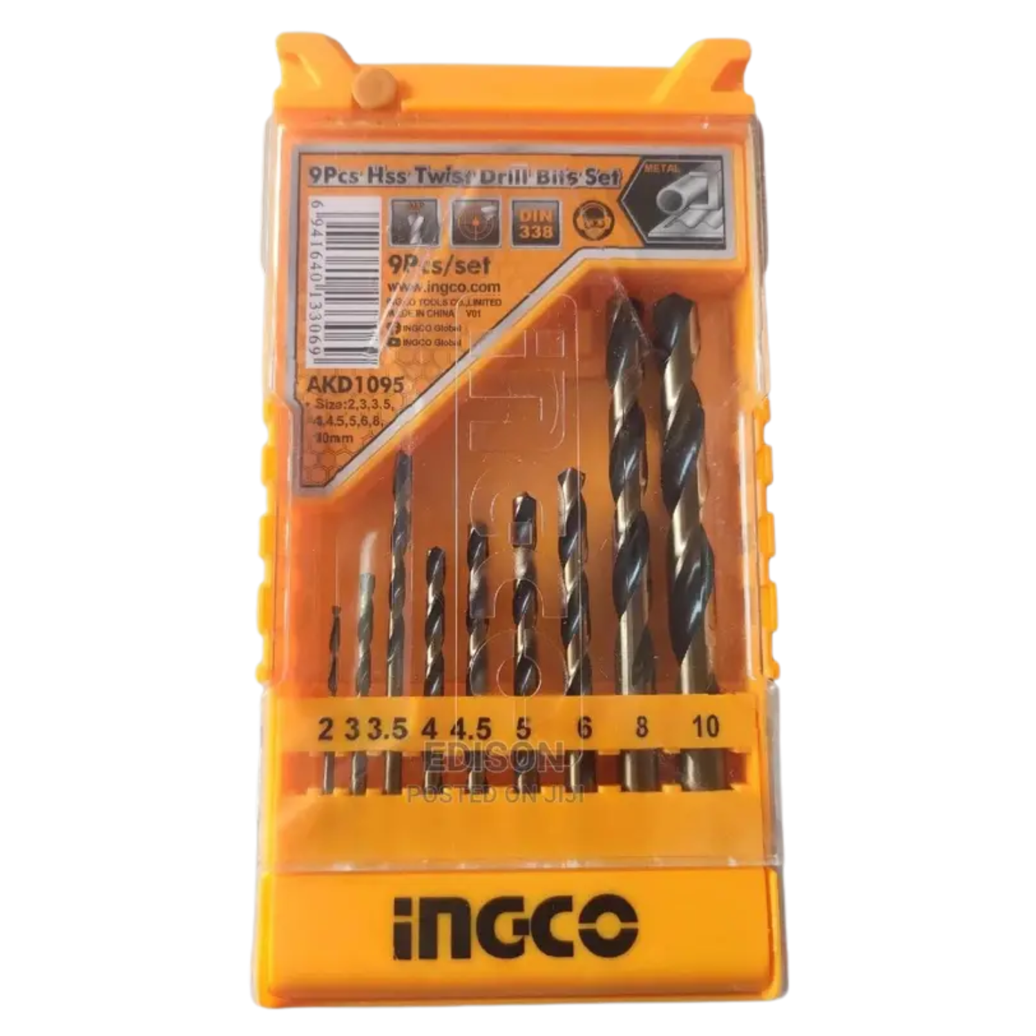 The INGCO 9 Pcs HSS Twist Drill Bit Set is engineered for precision drilling in metal, plastic, and wood. Built from high-speed steel (HSS) and compliant with DIN 338 standards, this set offers strength, sharpness, and durability for both professional and workshop use.