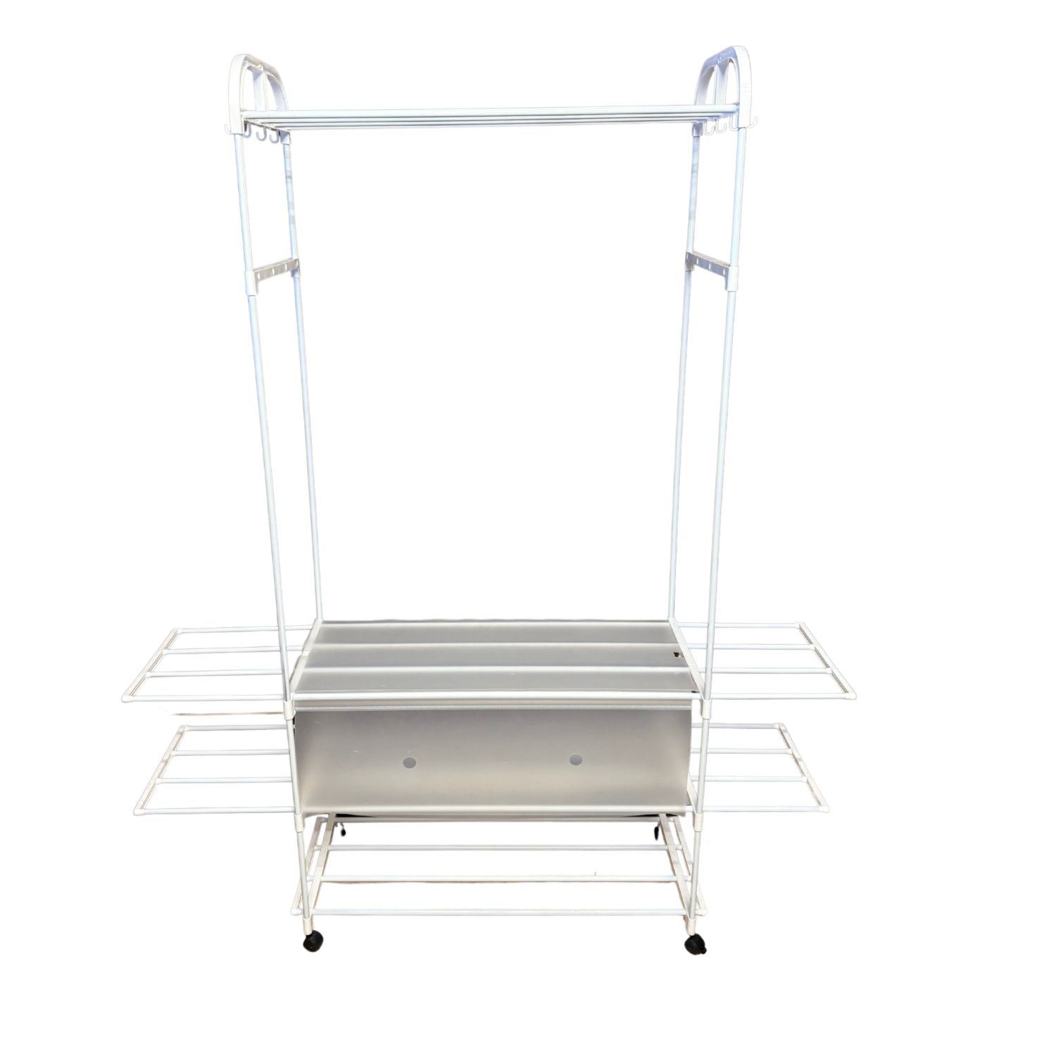 Multi-Function Rolling Clothes Rack for Storage & Hooks