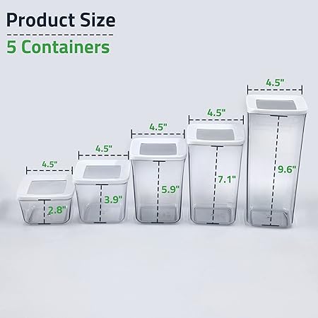 🏡 5 Versatile Sizes – Includes containers of different heights (2.8", 3.9", 5.9", 7.1", 9.6") for all your storage needs.