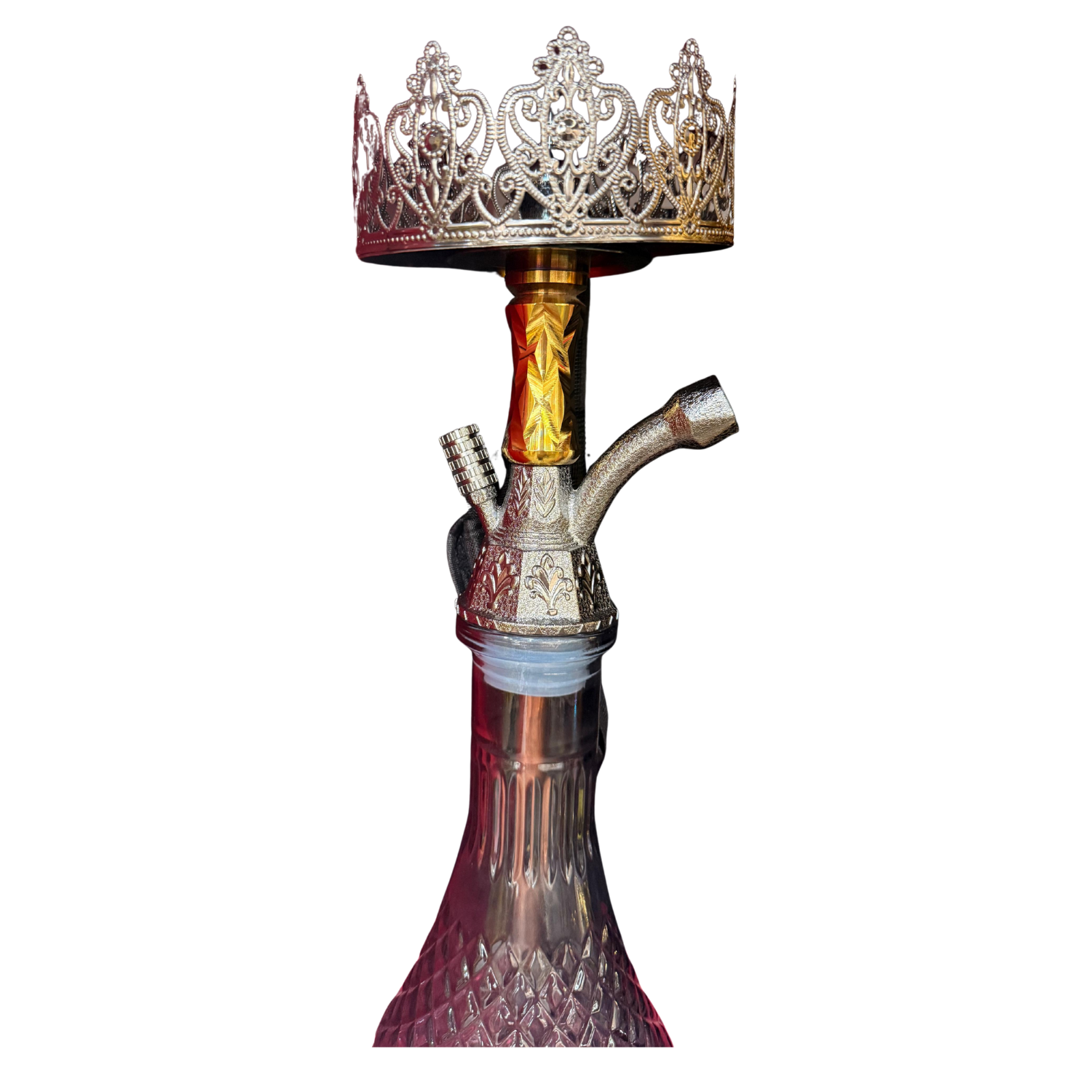 Experience true luxury with the Royal Crown Hookah, a masterpiece crafted with intricate golden detailing and a distinctive crown-shaped tray. The design reflects elegance and grandeur, complemented by a crystal-clear glass base with golden accents. This hookah not only performs exceptionally but also stands out as a decorative showpiece.